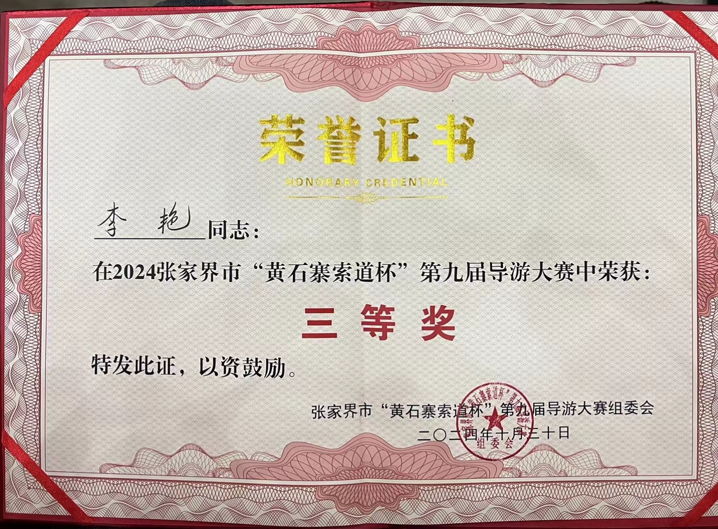 我們很高興地宣布,張家界康輝旅行社在近期舉行的黃石寨導(dǎo)游大賽中取得了優(yōu)異成績,榮獲二等獎和三等獎。