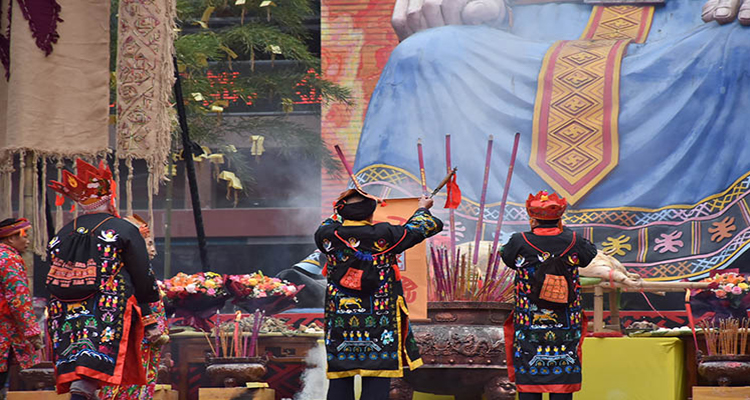 ──瑤族盤王節(jié),是瑤族最隆重、最神圣的傳統(tǒng)節(jié)日。自農(nóng)歷十月十六日起,瑤人在盤王廟里舉行“還盤王愿”的祭祀活動(dòng),歷時(shí)7天7晚或5天5晚。節(jié)日期間,既有莊嚴(yán)肅穆的祭祀活動(dòng),也有吟、唱、頌、歌、舞、表演、對(duì)白、說笑、與客人對(duì)唱等娛樂活動(dòng)。