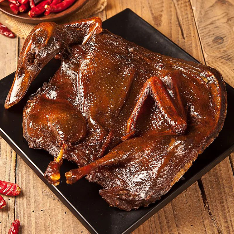 “常德醬板鴨”選用洞庭湖區(qū)蛋鴨為材料、經(jīng)三十多種名貴中藥浸泡,10余種香料、經(jīng)過(guò)風(fēng)干、烤制等15道工序精致而成,成品色澤深紅,皮肉酥香,醬香濃郁,滋味悠長(zhǎng),具有活血、順氣、健脾、養(yǎng)胃、美容之功效,是近期風(fēng)靡大江南北的一種風(fēng)味美食,是一道佐酒佳肴、送禮佳品。產(chǎn)品香、辣、甘、麻、咸、酥、綿適中,其中以辣稱奇,具有醇香可口,色香俱全,低脂不膩,回味無(wú)窮,食用方便的特點(diǎn)。