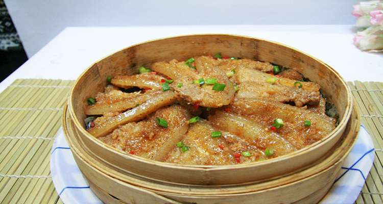 竹籠米粉肉來自邵陽綏寧,是一道苗家特色美食蒸菜,是許多苗家人過年時必不可少的美味佳肴,寓意日子蒸蒸日上,同時也是一道孝心菜,源于古典故事,有孝順父母的意思。主要食材是五花肉和米粉,肉香和米香交織,特點是醇香可口,肥而不膩。