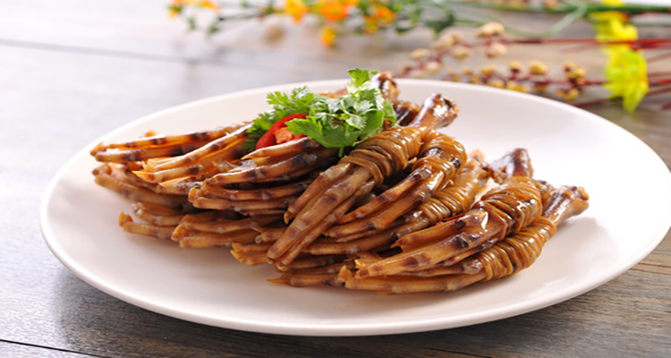 邵陽鴨腳包是邵陽長陽鋪的特色美食之一, 也是湖南地方極負盛名的特色菜,這道菜采用秘籍配方,以農家散養(yǎng)土鴨的鴨腳、鴨腸、鴨胗、鴨肝、熟肉為主料,由新鮮鴨腸纏繞在鴨掌上,并且中間裹著一個鴨心或鴨胗等組合,再進行烘烤而成,這道菜在當地非常受歡迎,享有“嶺南荔枝王,邵州鴨腳包"之美譽。