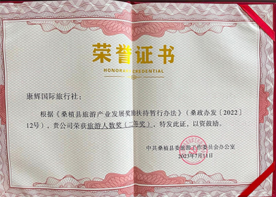 近年來康輝旅行社獲取的相關(guān)榮譽,僅少部份參考:
