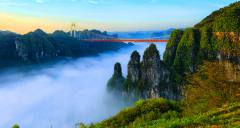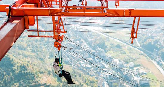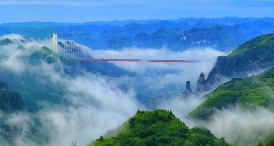 矮寨大橋飛越在德夯峽谷之巔,是世界跨峽谷跨徑最大的鋼桁梁懸索橋,大橋跨徑1176米,橋面距離峽谷底部355米。2007年10月開(kāi)始修建,2012年3月建成通車,總造價(jià)15億元。大橋以克服了五大“世界級(jí)”施工難題和創(chuàng)造了四項(xiàng)“世界第一” 的高科技含量享譽(yù)中外,被贊為橋梁建筑藝術(shù)和自然景觀完美結(jié)合的典范。矮寨大橋不只是連接湘渝的重要交通設(shè)施,更是湘西的標(biāo)志性景點(diǎn)。