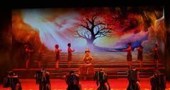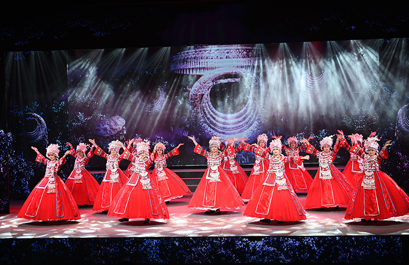 乾州延續(xù)千年的傳統(tǒng)生活方式,沉淀了世代相傳的傳統(tǒng)工藝。本篇通過《嫁衣》、《織女謠》等舞段,藝術(shù)再現(xiàn)了《土家織錦技藝》、《苗族銀飾鍛造工藝》,《湘西苗族服飾》、《湘西苗畫》、《湘西紙扎》、《踏虎鑿花》等國家級手工技藝類非遺項(xiàng)目,讓觀眾在沉浸性的展示中,感受到湘西人巧奪天工的技藝和獨(dú)特的審美觀。