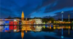 愛(ài)情谷,這里可以看到瑞士大鐘塔和歐洲小鎮(zhèn),處處都是典型的歐式建筑。右邊的丹麥國(guó)王加冕城堡,是個(gè)明星夢(mèng)工廠和恐怖城。與它相鄰的那座綠頂紅墻的建筑是荷蘭海牙國(guó)際法院,內(nèi)部是一個(gè)世界蝴蝶博覽館,在那里可以免費(fèi)欣賞到各種精美的蝴蝶標(biāo)本。左邊的湖水叫天鵝湖,取名于俄國(guó)作曲家柴可夫斯基的同名舞劇《天鵝湖》,湖邊那三座高大的風(fēng)車(chē)是荷蘭的象征。右邊地上的泉眼是旱噴泉,在旱噴泉上方的建筑是意大利圣三山教堂,它與原型比例是1:1.5,每年都有許多對(duì)新人在這里舉行西式婚禮。這里還有一個(gè)歐洲小鎮(zhèn)仿建的是德國(guó)和法國(guó)民居,比例為1:1的歐式風(fēng)格,被開(kāi)放成商場(chǎng)和服裝出租點(diǎn)。