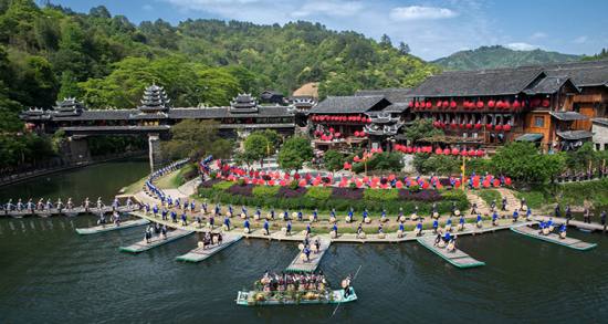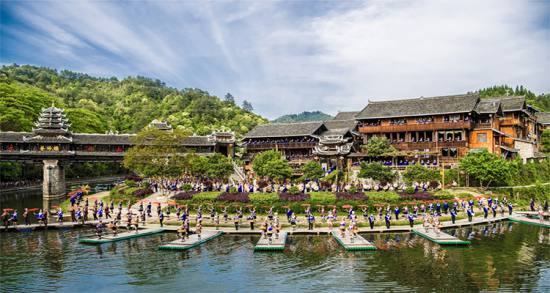 觀看皇都侗族文化村藝術團的精彩表演,則是另外一番享受,《敬酒歌》 、《扯扯摸》 、 《踩簸箕》 、 《禾桿歌》、 《鬧茶》 《搶蛋》、《板凳情歌》 、《筒地咯羅鬧歌堂》等一組民族色彩十分濃厚的文化節(jié)目匯集了侗族傳統(tǒng)文化的精華,輕歌曼舞,回腸蕩氣,于行云流水間透出一種陽剛之美。