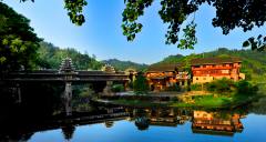 皇都侗寨(2015年12月29日被評為國家AAAA級景區(qū))位于通道縣“百里侗文化長廊”中心地帶,距縣城10公里,由頭寨、尾寨、盤寨、新寨四個寨組成,為純侗族聚居的侗寨,總面積31.26公頃,總人口2250人,共230戶。。坪坦河、高盤溪、后沖溪流經(jīng)村寨,坪坦公路、牙屯堡公路穿過村寨,山體環(huán)繞村寨四周,根據(jù)四條龍脈的走向,形成了“三水抱四寨、三宅共一場、四寨成盤龍”的獨特居住環(huán)境。